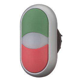 Eaton Moeller series M22 Double actuator pushbutton, RMQ-Titan, Actuators and indicator lights non-flush, momentary, White lens, green, red, Blank, Bezel: titanium