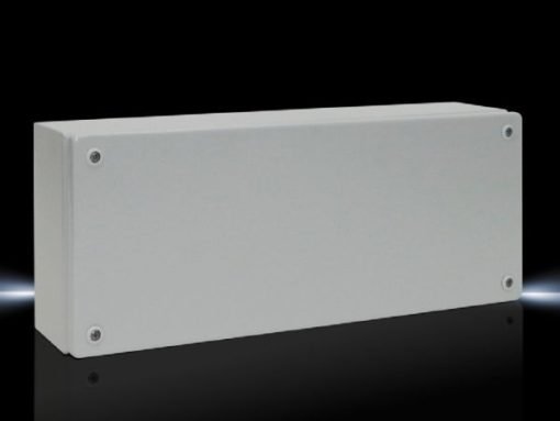Ruuvikiinnitteisellä kannella varustettu maalattu teräslevykotelo, ilman laippalevyä. Kotelointiluokka IP 66.
