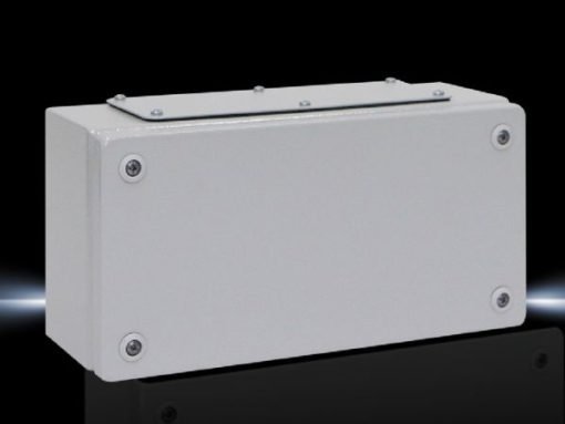 Ruuvikiinnitteisellä kannella varustettu maalattu teräslevykotelo, laippalevyillä. Kotelointiluokka IP 55.