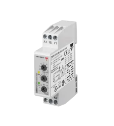 Multifunctions Timer, DIN rail mount, 17,5x81x67,2mm housing, knob selectable function, selectable time ranges 0,1s – 100h, Supply voltage 24-240Vac and 24Vdc, Screw terminals connection, 5A SPDT relay output